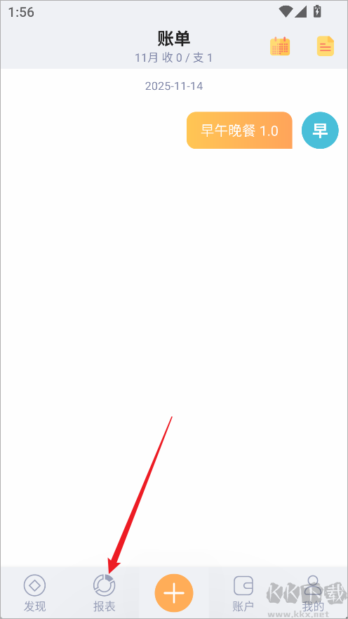 1、打开天天记账后,先点击底部导航栏中的【报表】进入统计页面。