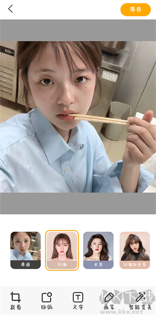 4、从相册选择需要美化的照片,然后点击下方的发型,就可以一键为自己换上了;