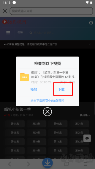 4、就可以自动识别连接中的视频,点击下载
