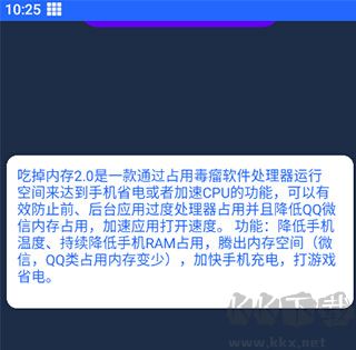 吃掉内存2.0app是一款体积小巧但是功能强悍的手机清理软件,采用多核线程机制清理内存,支持一键回收内存泄漏的应用,有效清除冗余占用、腾出更多内存空间。软件新增CPU加速功能,可以快速降低手机温度与功耗,让手机保持平稳运行。它的操作十分简单,只需要反复点击CPU加速按钮就可以使用。需要的朋友快来下载试试吧!