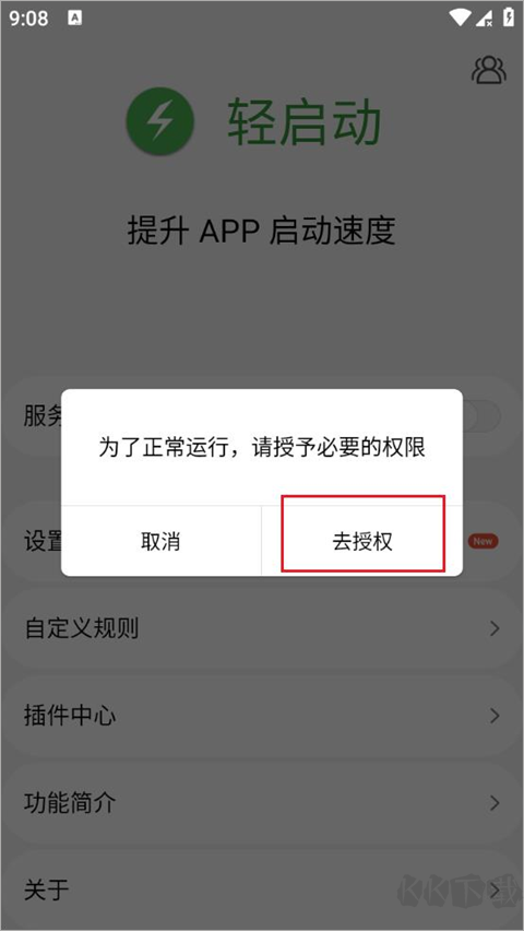 安装与启动:下载安装“轻启动”后,只需一键开启服务权限,软件即进入待命状态,随时准备跳过广告。