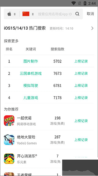 支持苹果与安卓商店列表实时检索,最新位次、波动走向、对手列表情况一览无余,且结果更精确、更完整。