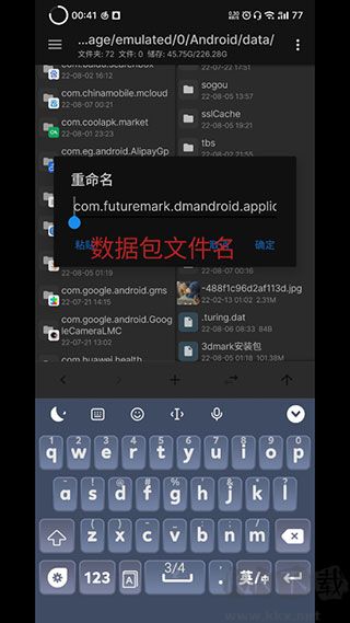 2、把数据包解压到路径/storage/emulated/0/Android/data/里面然后重命名把数据包为com.futuremark.dmandroid.application只下了测试经常用的Wild Life。