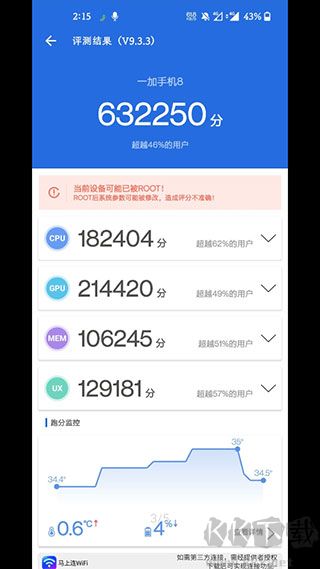3、应用配置后重启手机,再用安兔兔跑个分,整整提高了7万分,基本上都是GPU提高的成绩。