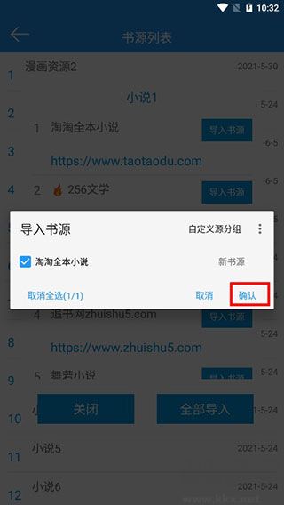 3、选择书源列表任意一个书源集合,或者点击全部导入