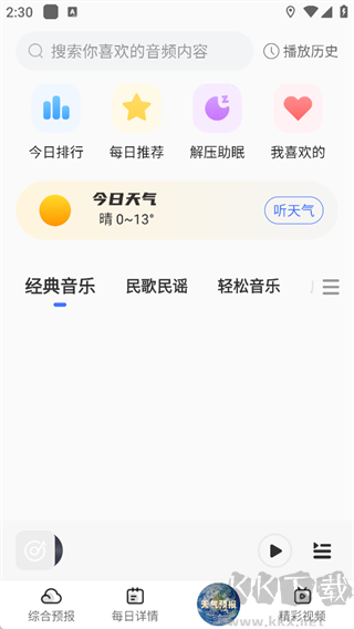 整合天气播报与音频内容,用户可听天气,还能浏览今日排行、每日推荐、解压助眠等音频分类,在获取天气信息的同时享受音频服务。