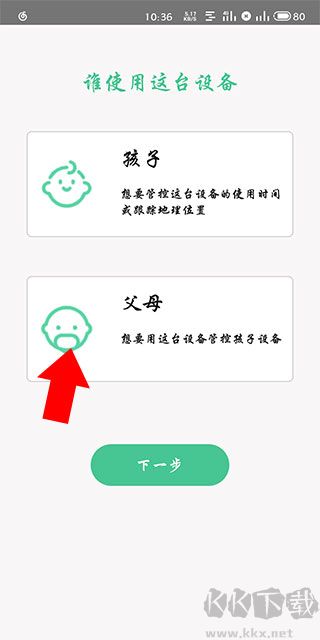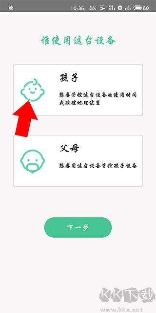 3、在孩子手机上下载该程序,挑选孩子端,或扫描家长端的二维码完成安装。