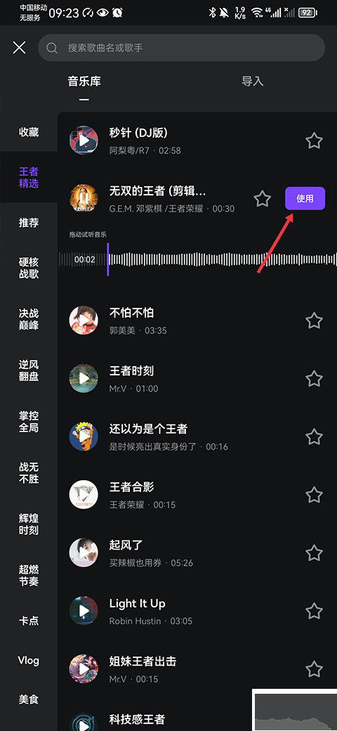 2、从乐曲库或效果音库中,挑选需要的声音资源。