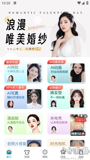 5、集成漫画脸、AI写真、时光相机等多种创意拍摄模式,适配不同用户的多样化创作需求。