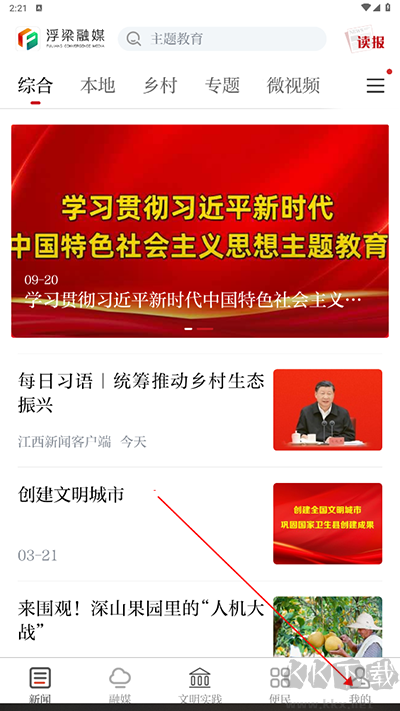 1、下载后打开进入浮梁融媒app,在首页下方点击【我的】;