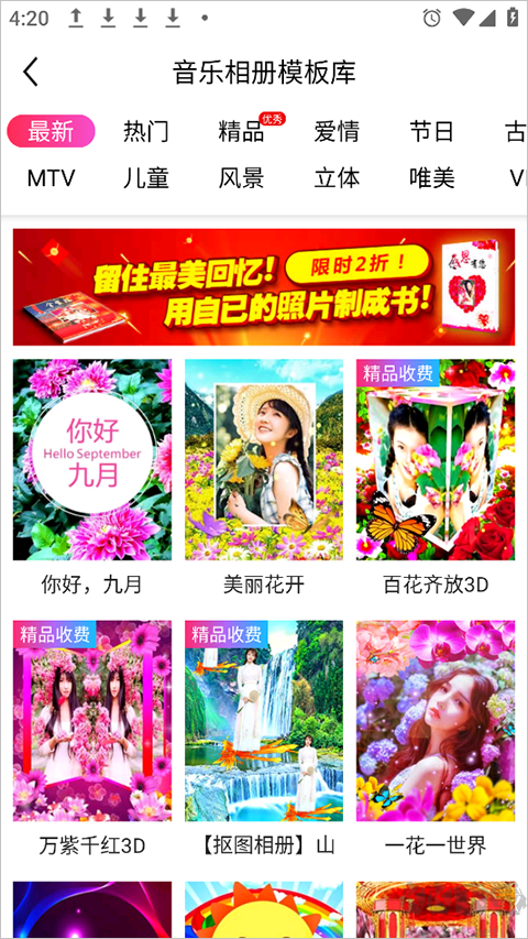 支持多图上传,是照片分享的实用工具。动感秀提供各类主题的精美动画模板,涵盖600余款相册模板,随心选用,轻松打造专属视觉故事。