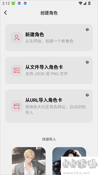 2、角色卡来源丰富且操作灵活,既可本地新建或导入,也能通过URL对接外部社区资源,获取方式多元。
