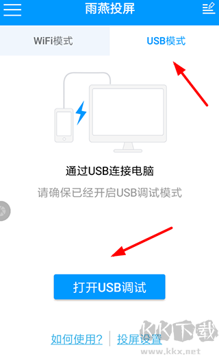 2、保证wifi网络相连的情况下,用户就可以通过扫描客户端上的二维码连接投屏。想要保证信号稳定的话,还可以尝试借助USB线进行连接投屏。