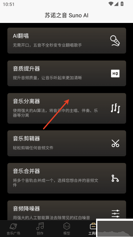 4、更有音乐工具箱,如ai翻唱、音质提升器、音乐分离器、音乐剪辑器等等;