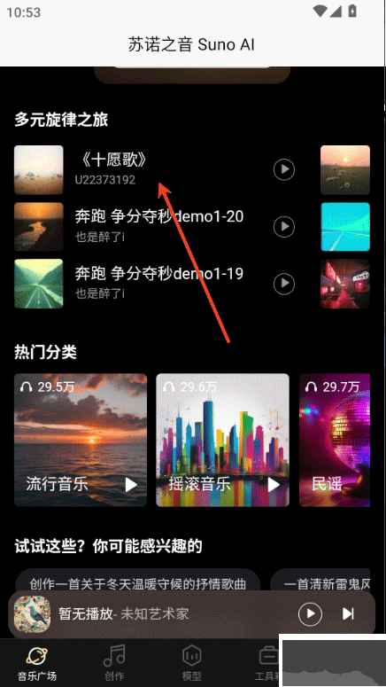 在创作广场中激发创意,汲取他人作品灵感,助力自身音乐想法充分释放。