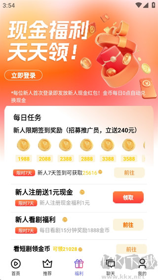 3、每天签到或者完成任务就能领取金币,新用户也有很多的福利;