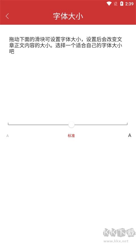3、拖动滑块就可以设置字体大小,设置后会改变文章中文的内容大小;