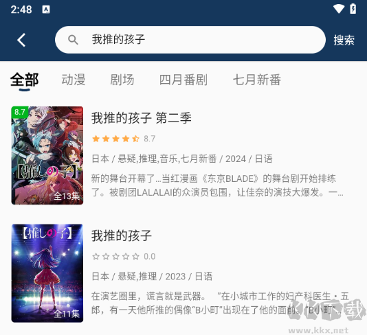 2、如下图所示,此处直接搜索当前热门作品《我推的孩子》。
