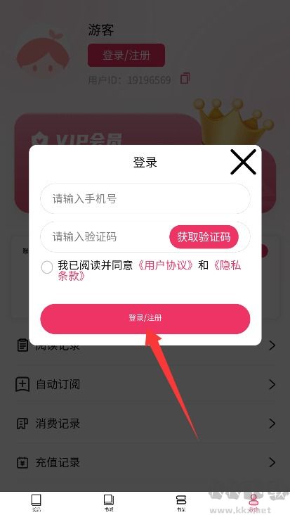 2、在登录界面输入手机号码和验证码,勾选同意相关协议后点击登录、注册按钮进入。