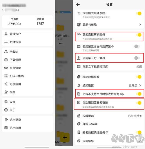 拥有很多官方不支持的功能,比如蓝奏云直链解析、自动更改后缀、自动识别蓝奏云链接等等;