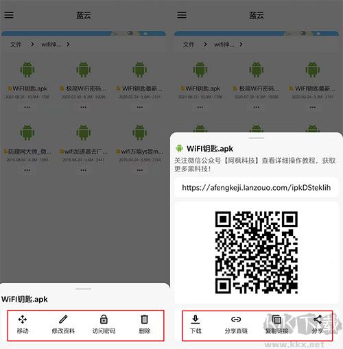 能对云盘文件任意进行移动、编辑、设置密码,如果有需要还可以直接给好友分享直链,下载起来更方便。