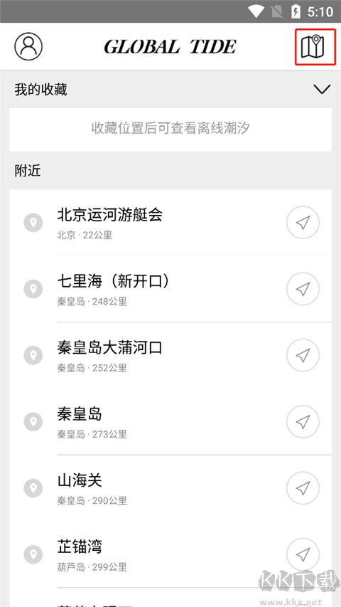 5、支持收藏潮汐地点,只需点击界面顶部的“收藏”按钮,即可将当前查询位置保存至个人列表。