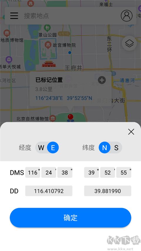 3、打开坐标上的经纬度,手动输入你想的地方的经纬度;