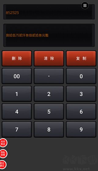大写转换app是一款人民币金额大小写转换软件,帮助你解决日常转账、报销时填写大写金额的麻烦。体积小巧不占内存,操作简单,触屏点击数字就能显示大写金额,适用于报销单填写、汇款、会计录入、签合同等场景。可以快速将数字转为人民币大写,支持复制转换结果,最大可以转换壹万亿元,最多兼容两位小数。软件还内置进制转换器、房贷计算器和普通计算器,支持小数转换,满足更多实用需求。需要的朋友快来下载试试吧!