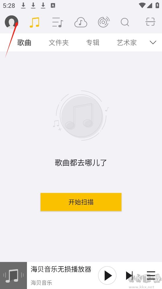 1、首先大家先点击左上角的头像按钮,打开个人功能列表就可以使用wifi传歌功能了