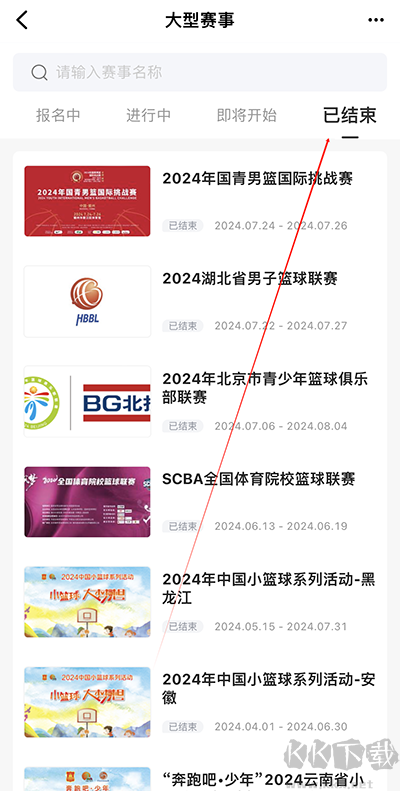 2、浏览已完结的赛事列表,寻到目标比赛项目进入详情。