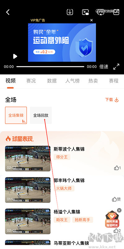 5、点击“全场回放”按钮,即可开始观看比赛录像。