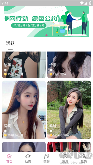 3、进入app可以看到一些活跃的用户,能够发起聊天互动;