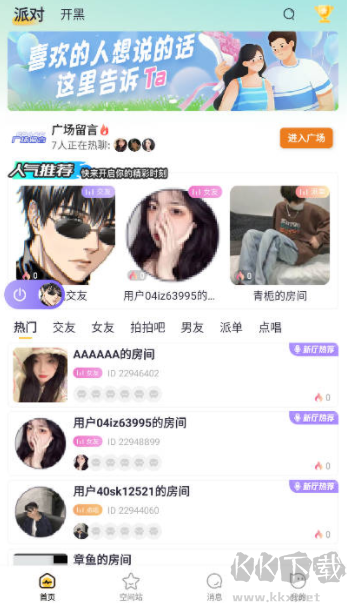设有多个语音连麦房间,用户可随意进入各类主题频道,与新朋友或熟人畅聊互动,满足多样化的社交需要。