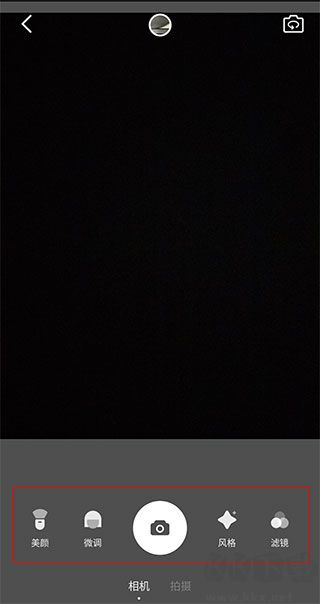2、进入拍摄界面后,上方为取景区域,下方为美化与滤镜选项,按需选用。