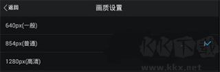 3、选择“画质设置”界面中,选择自己需要的画质(640px、854px、1280px)即可。
