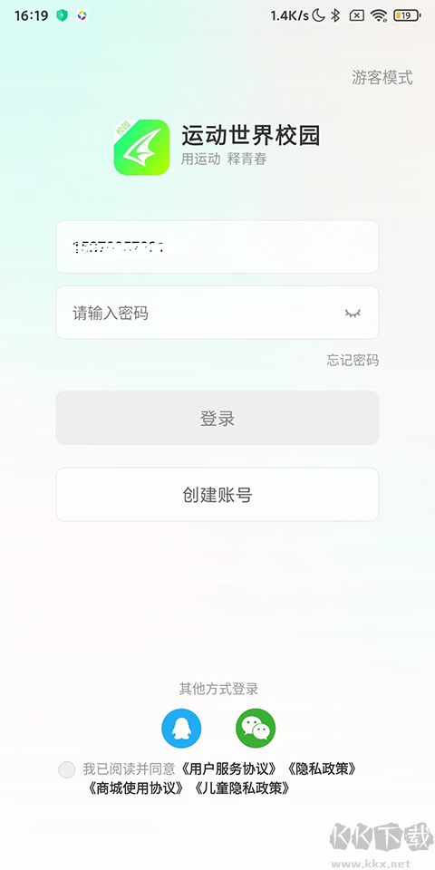 1、下载运动世界校园App,打开进入使用手机号注册。