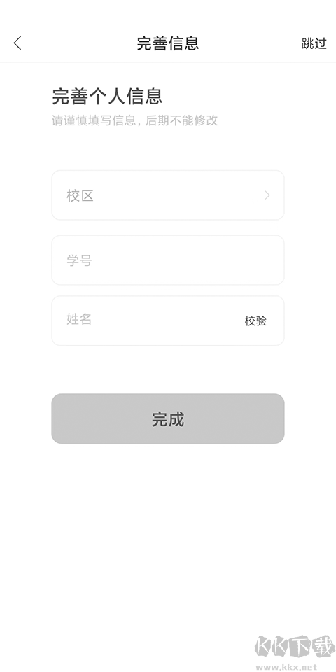 2、注册完成后登录,选择学校,填写学号、姓名等即可。