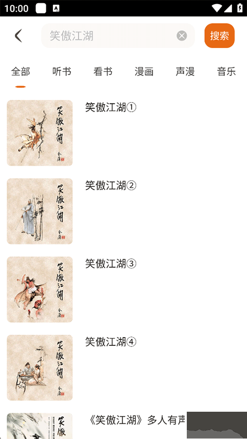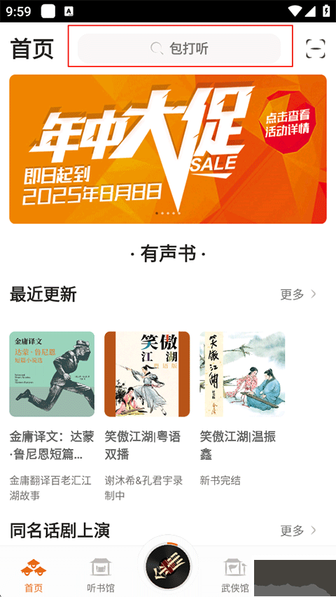 2、在搜索栏输入想要听书的书籍名称,点击搜索进入;
