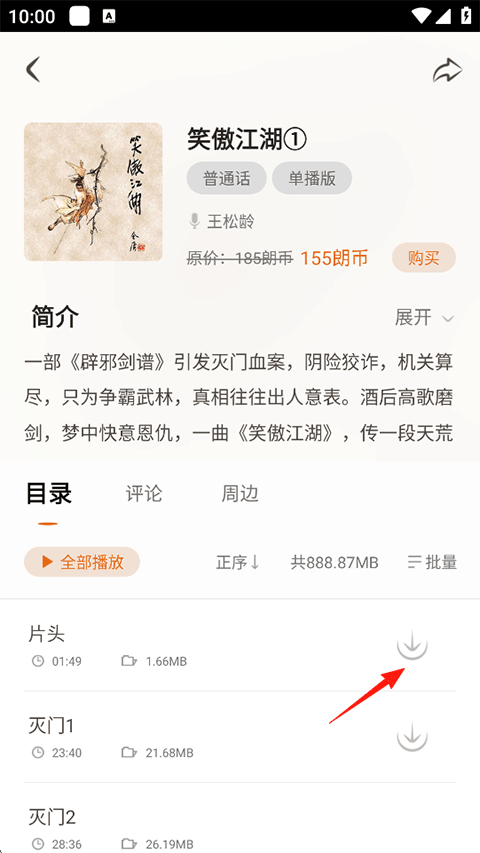 支持免费试听、单集兑换下载、音频书签标记、后台持续播放及定时关闭等实用设计,听书更随心自在。