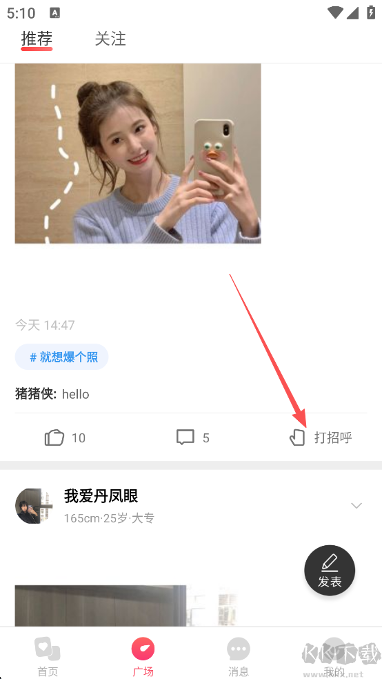 2、如果遇到自己心仪的,点击【打招呼】