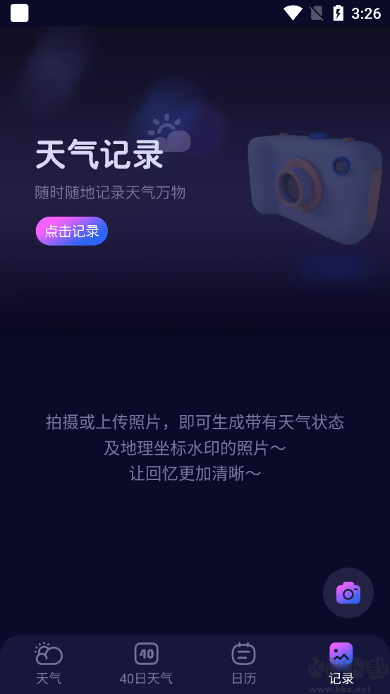 拍摄或上传照片,即可生成带有天气状态及地理坐标水印的照片~让回忆更加清晰~