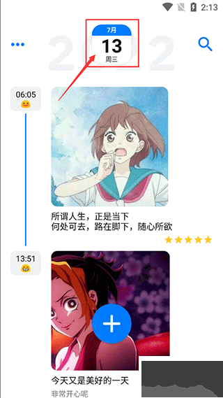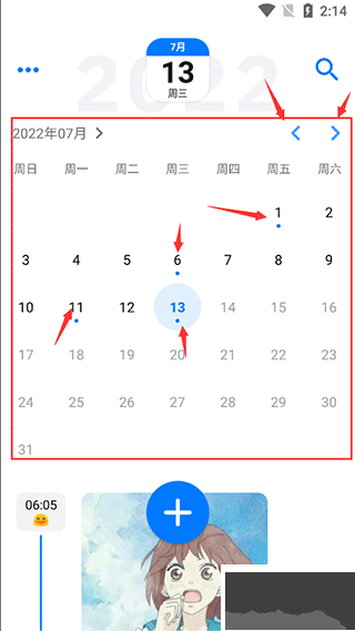 3、【切换日期】底部按钮不仅用于新增日记,还可左右滑动或拖拽,实现日期的快速跳转,轻松穿梭于过往时光。