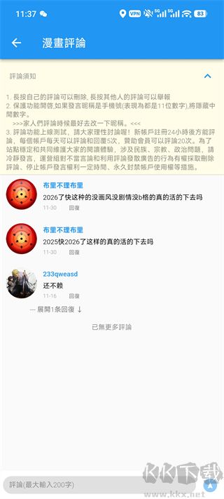 4、每部漫画都配有评论区,你可以查看其他读者的讨论,也可以发表自己的看法进行互动。