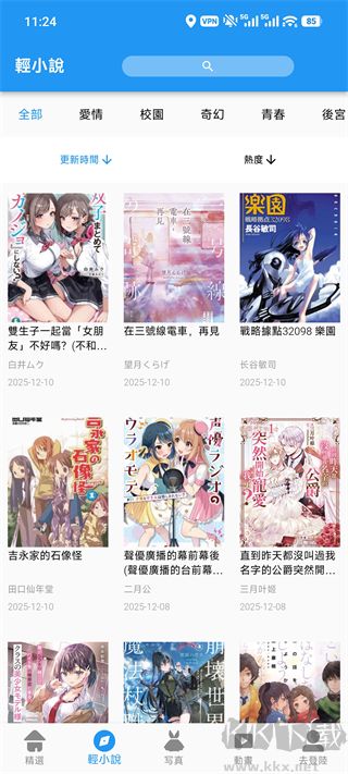 聚合爱情、校园等类别的轻小说内容,按更新时间 / 热度排序呈现最新作品。