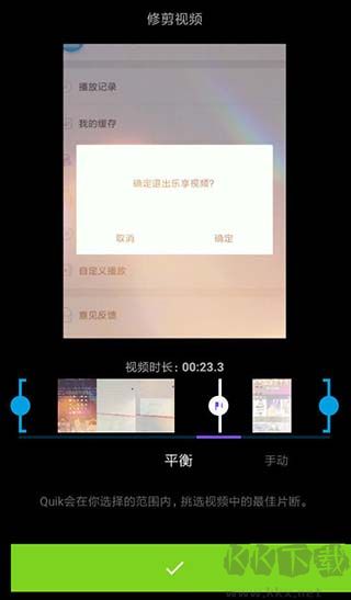 5、可设定视频总时长,Quik 将自动适配镜头切换节奏与过渡效果。