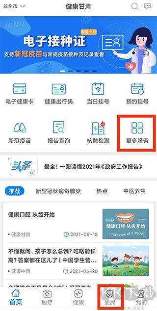 1、打开“健康甘肃”应用,触击“更多功能”选项。