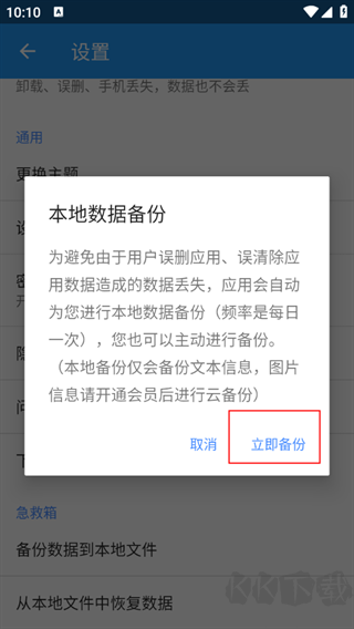 注:应用每日会自动为用户进行一次本地数据备份,避免用户误删应用、误清除应用数据造成数据丢失。