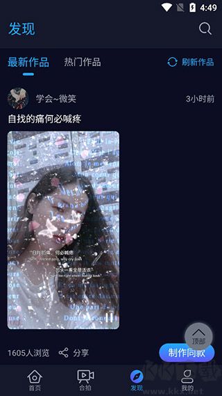 4、返回主界面,点击合拍,任意选择一个素菜开始制作合拍视频;
