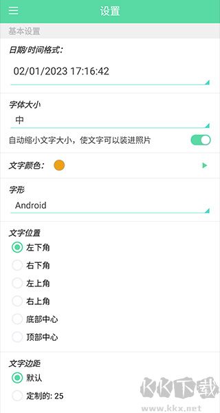 2、进入设置界面后可以设定时间戳的格式、字体样式、位置、大小以及颜色等等
