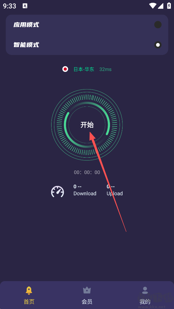 1、打开软件,注册登录之后,点击智能模式,选择线路